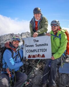 Lonnie Bedwell, right, celebrates the improbable feat of successfully scaling the last of the highest peaks on each of world’s seven continents.